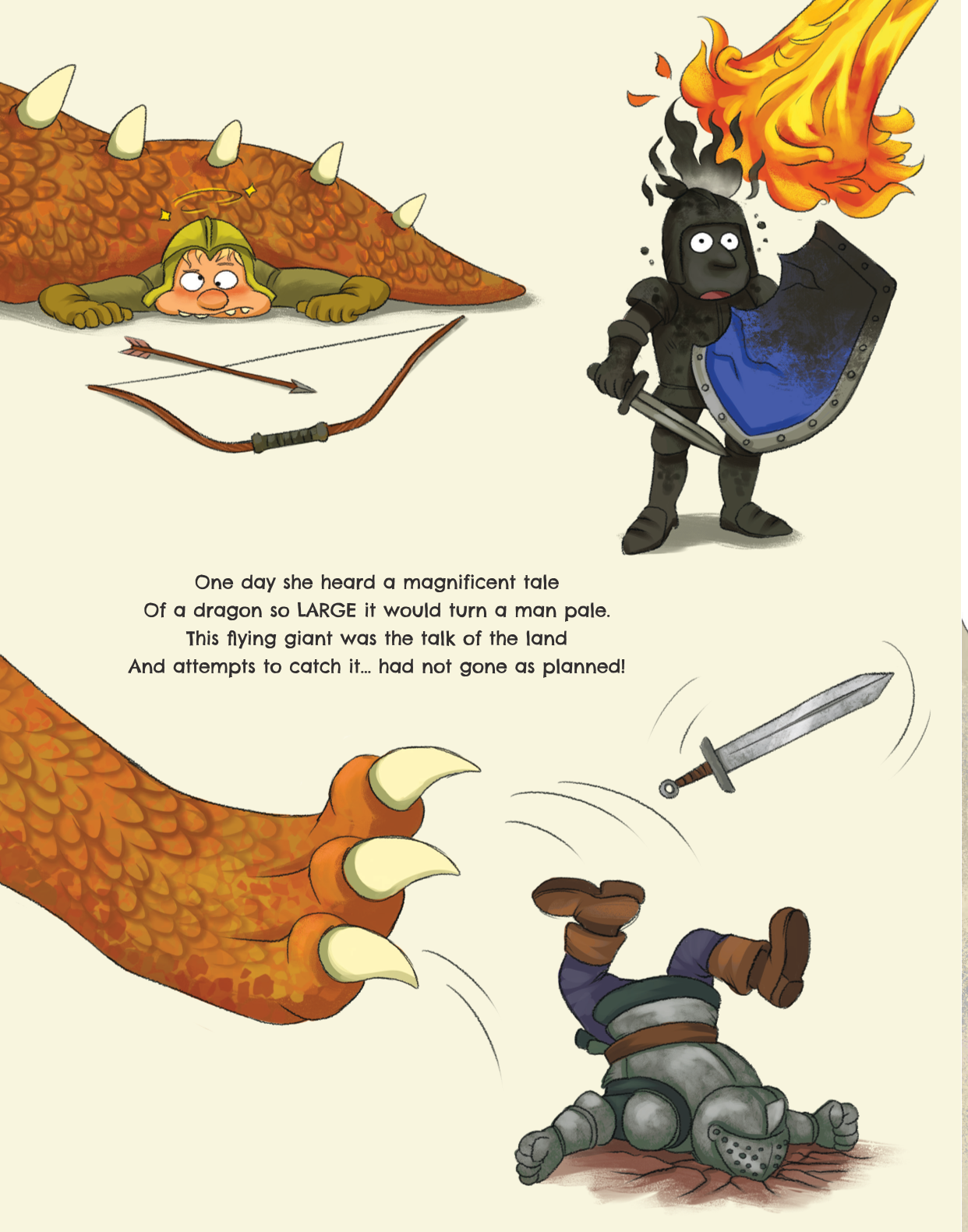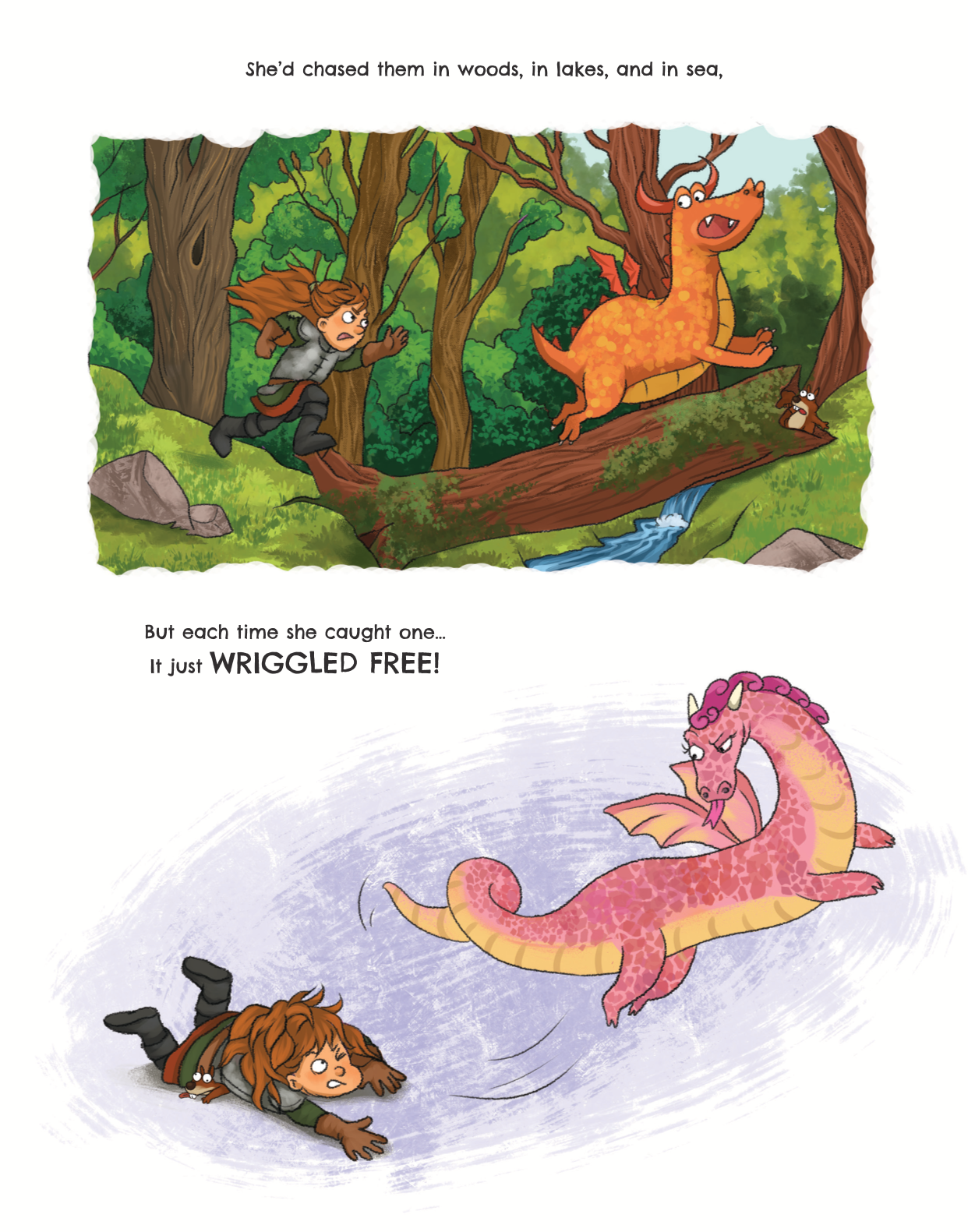 Grace has chased a LOT of dragons, and caught… NONE! When she hears tales of the fiercest dragon in the land, she makes a plan. With knights, blacksmiths, hunters, and nets, she’ll stop at nothing to make this dragon her pet!